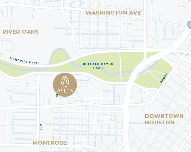 Strategically located along Allen Parkway in Houston's Inner Loop, The Allen sits at the convergence of River Oaks, Montrose, and Downtown Houston — offering direct access to premier dining, retail, and cultural destinations, with immediate adjacency to Buffalo Bayou Park. The site is designated as an Urban Targeted Employment Area, qualifying investors for the reduced $800,000 minimum and priority visa processing.